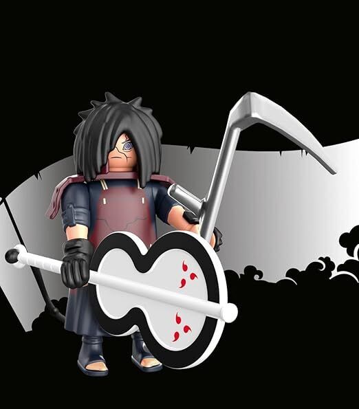 The successful collaboration between PLAYMOBIL and NARUTO goes into the second round. All anime fans can look forward to new characters from the exciting NARUTO universe. The creative figures inspire with lots of details and cool accessories from the well-known hit series and are the eye-catcher in every fan article showcase. The PLAYMOBIL set includes NARUTO SHIPPUDEN character Madara with shoulder-length black hair covering his right eye. In his hand he holds a scythe as well as a gunbai fan.