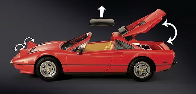 The iconic Ferrari 308 GTS Quattrovalvole from the classic 80s TV crime series Magnum, p.i. Set also includes the main characters from the series: Thomas Magnum, T.C., Rick and Higgins.