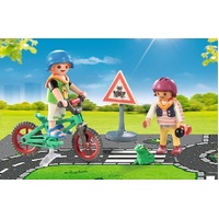 The toy set includes three PLAYMOBIL figures, six traffic signs, two bicycles, a megaphone, a trowel and other great extras. An ideal gift or souvenir for the start of school or for all clever children aged 4 and up.