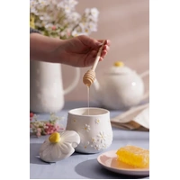 The Price & Kensington Daisy honey pot & drizzler is crafted from high-quality ceramic and includes a Betula wooden drizzler. Perfect for serving honey, the honey pot features a novelty embossed daisy 3D lid and is finished with a radiant yellow hand paint handle. Featuring a pretty petal embossment with a soft cream glaze and delicate yellow hand paint centre across the body of the bowl, the honey pot & drizzler is the perfect playful addition to any kitchen decor. The Daisy honey pot & drizzler is part of a fully co-ordinating collection, including ceramic storage and tabletop accessories.