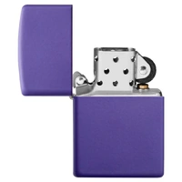 The Purple Matte lighter is back and ready for action. This stunning base model displays a deep purple hue and has a lasered hinge and bottom stamp.