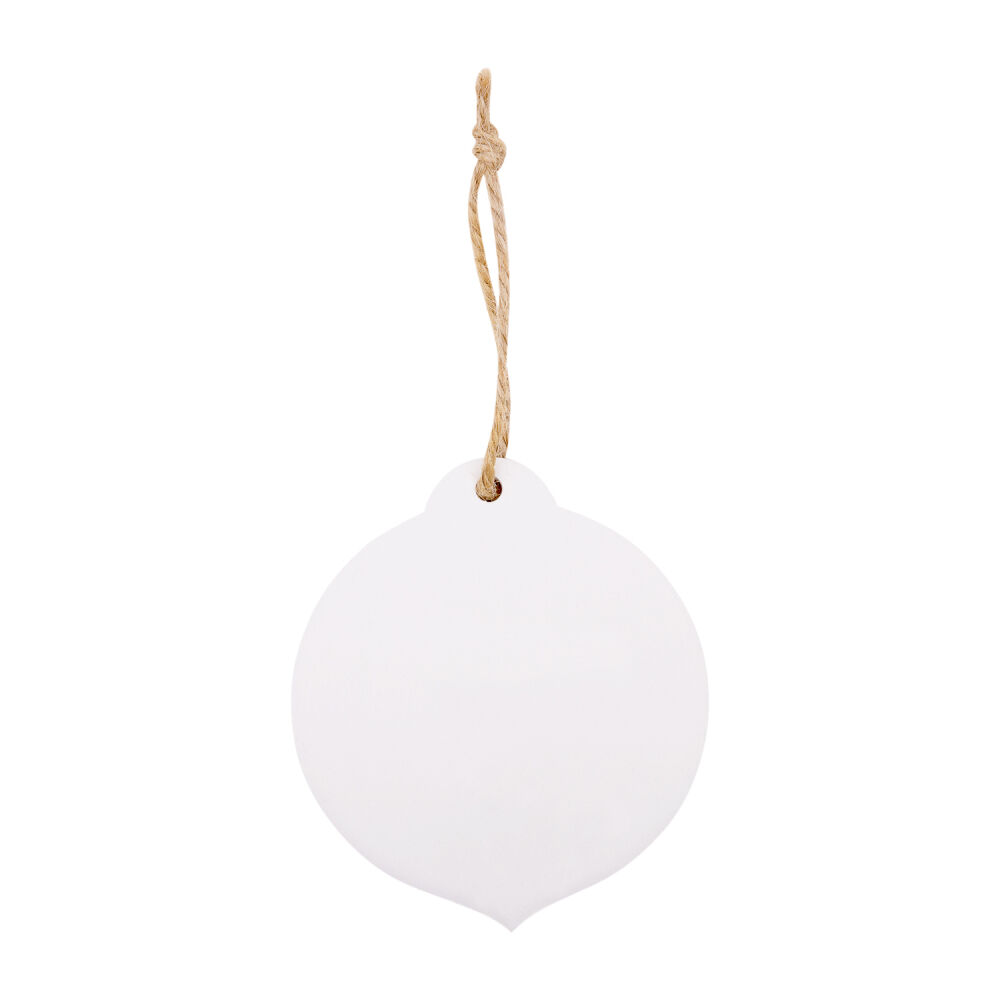 - Embossed, bauble-shaped ceramic hanging keepsake with intricate print design and ribbon for hanging