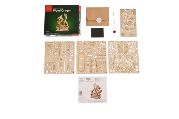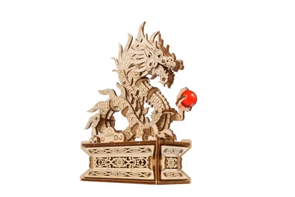 Assemble me. I am your ancient good luck charm. 2024 marks the year of the Dragon in the Chinese zodiac, specifically the Wood Dragon, which occurs only once every sixty years. Chinese dragons symbolize prosperity and good luck, with the Wood Dragon known for its energetic, creative, and diplomatic nature. To celebrate this auspicious occasion, Ugears offers the Wood Dragon, a 3D puzzle box and DIY model. This lucky dragon holds a fiery red pearl in its claw, symbolizing wisdom and spiritual power. The model features a hidden drawer that opens with a secret button, perfect for storing a special message or treasure. Give the Ugears Wood Dragon as a unique gift for Chinese New Year 2024. Whether you present it as a boxed set for building or as a completed model with a hóngb?o inside, its sure to be a memorable and cherished gift.