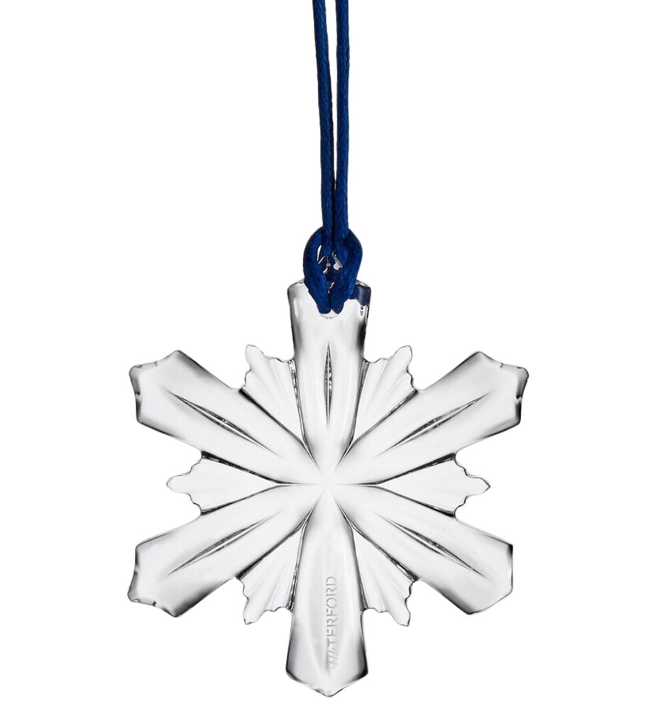 Delicate and stunning, this crystal Mini Snowflake ornament is carefully cut with shards of fine crystal radiating outwards to create an joyful and unmissable sparkle in the light of your Festive decorations. Perfect for the tree or as a wonderful table setting, the snowflake is a quintessential emblem of winter. This ornament is finished with a sleek and elegant blue rope-tie and beautifully presented in a signature Waterford box and a keepsake cloth bag.