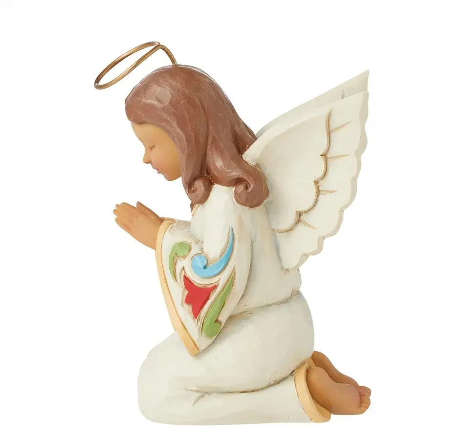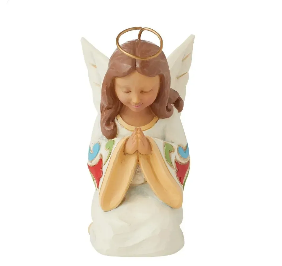 This colourful miniature features the unique artistry of Jim Shore in a size that fits in any room of the home or office. The inspirational angel reflects the power of heartfelt prayer; a meaningful reminder of faith and hope.