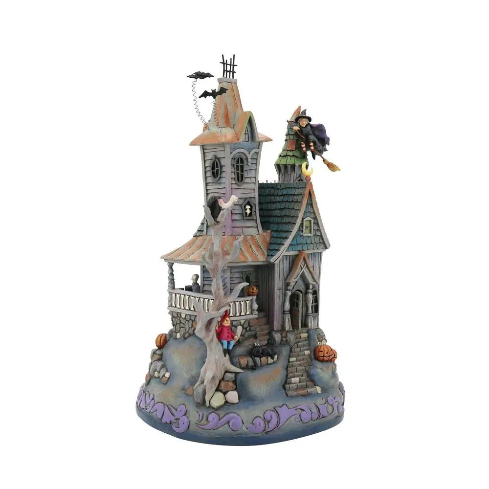 This towering house is a masterpiece of haunts and horror. With a spooky surprise behind every door and window, ghosts, witches, bats, and jack-o-lanterns bring this Jim Shore mystery mansion to life with enchanting charm.