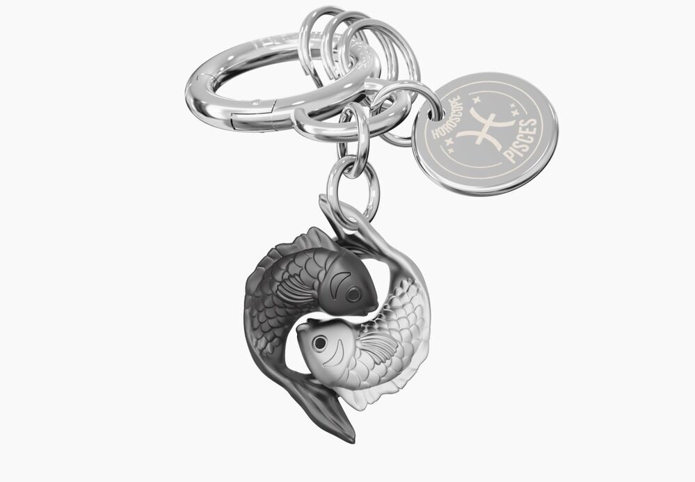 This Metalmorphose keychain shows the dual fish that symbolises Pisces, a representation of the depths of the emotional and spiritual waters they navigate throughout their lives.