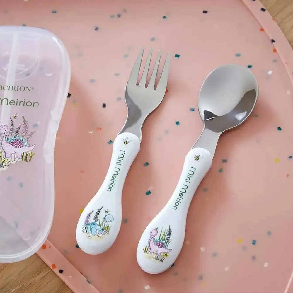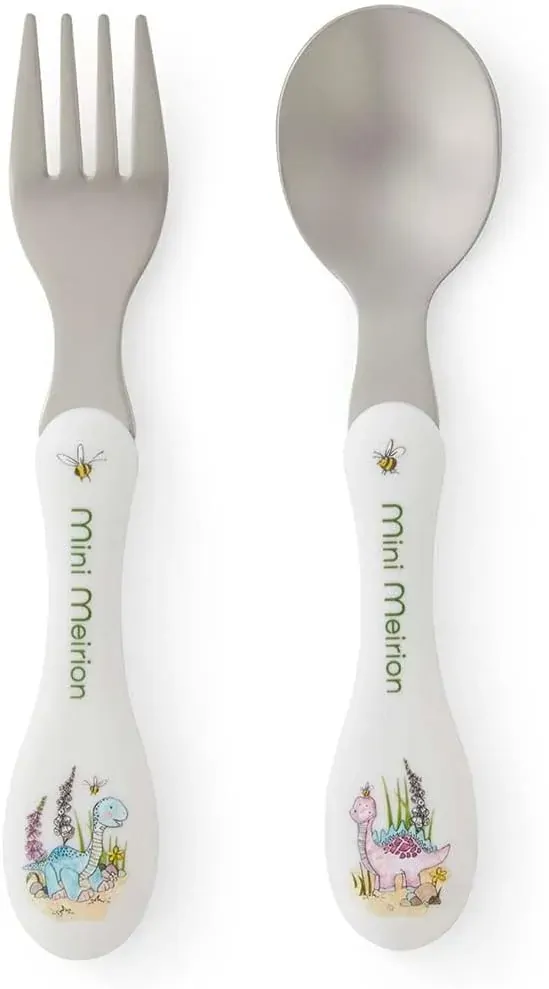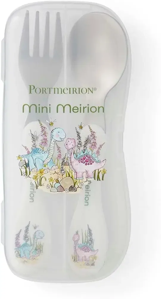 Make mealtimes a joy with this adorable 2-piece cutlery set from the Mini Meirion collection from Portmeirion. Featuring a pink and blue dinosaur on the fork and spoon handles, this set is perfect for little hands. Made from durable stainless steel with easy-grip melamine handles, it's designed for comfortable and safe dining.