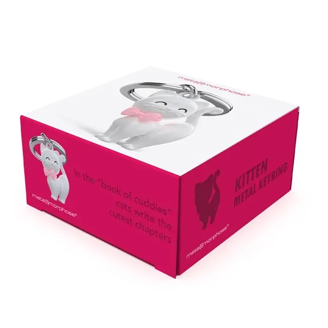 Introducing the Metalmorphose 3D House Cat Keyring. Expertly crafted with precision and detail, this keyring features a 3D white cat with an adorable bow tie. Made with high-quality materials, it adds a unique touch to your keys and can also be used as a bag charm. Instantly elevate your style with this one-of-a-kind accessory.