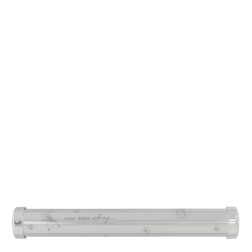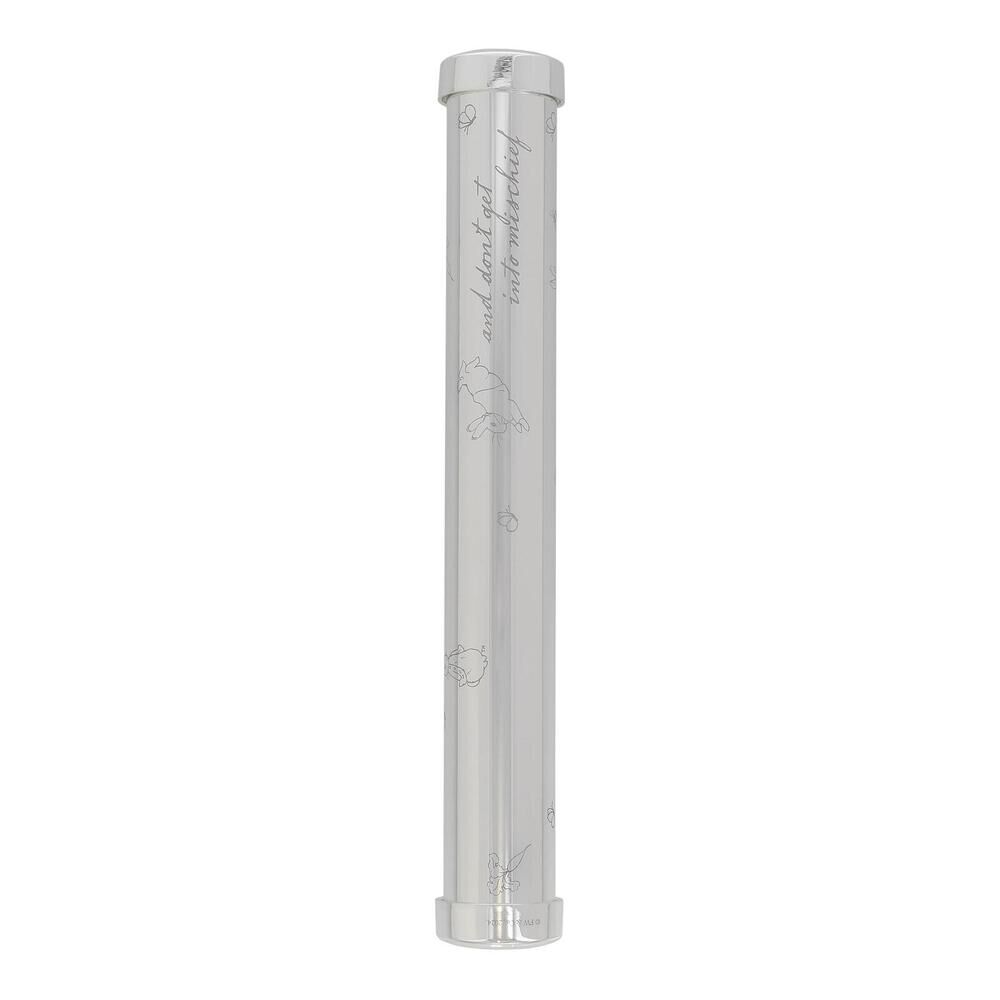 Celebrate a new bundle of joy with the Beatrix Potter New Baby collection. The silver-plated Certificate Holder, with an adorable etched illustration of Peter Rabbit, is the perfect keepsake piece for storing a birth certificate or other important documents that will be treasured for years to come. The engraved text reads "Now rung along... and don't get into mischief". Delivered in a branded Beatrix Potter gift box making it the perfect present for new parents, for a baby shower or Christening.