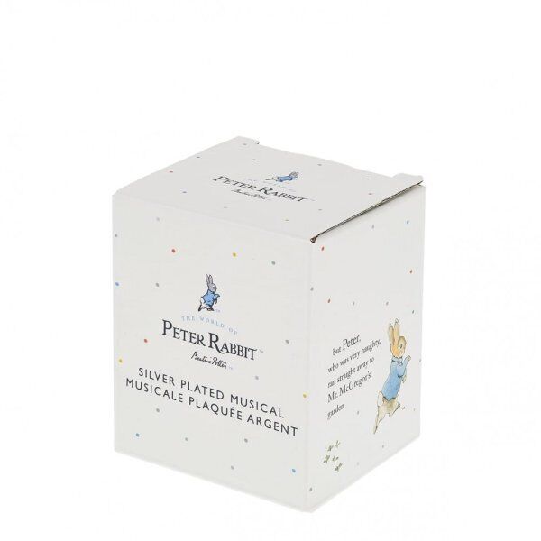 Celebrate a new bundle of joy with the Beatrix Potter New Baby collection. The silver-plated Music Box, with an adorable sculpted Peter Rabbit on top, makes a beautiful gift that will be treasured for years to come. Wind up with the key and watch your favourite characters gently twirl around to the soothing sounds of Brahms' Lullaby. Delivered in a branded Beatrix Potter gift box making it the perfect present for new parents, for a baby shower or a Christening.