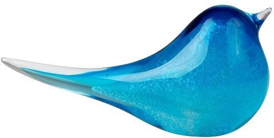 A beautiful coloured glass ornament from Whitehill's Russell Collection. Ornament is a wren bird in shades of blue.