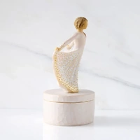 A gift to encourage and acknowledge individual strength; to celebrate accomplishments such as graduation or career promotion. Hand-painted carved sculpture is affixed to lid of Keepsake Box; lid is not attached. Box holds jewelry, accessories. Inside bottom of box reveals words of support.