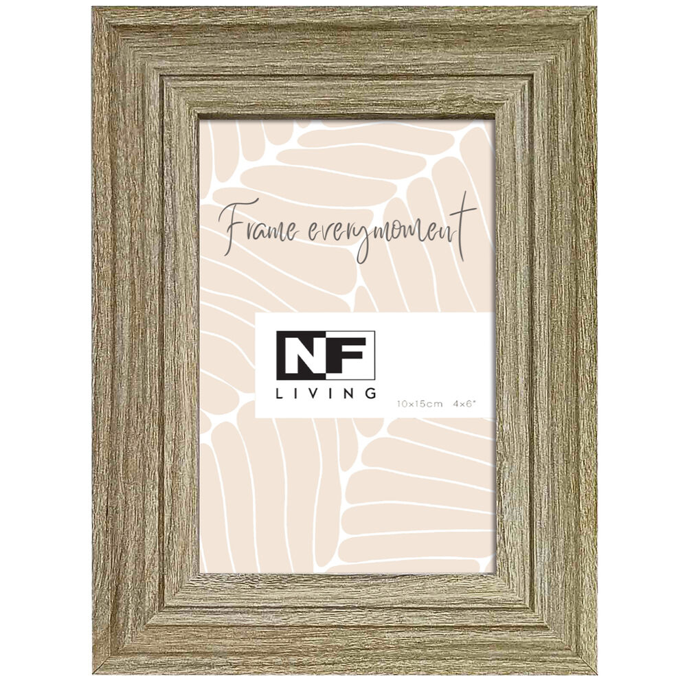 Light wood-coloured photo frame, fits standard 4x6" (10x15cm) photo.