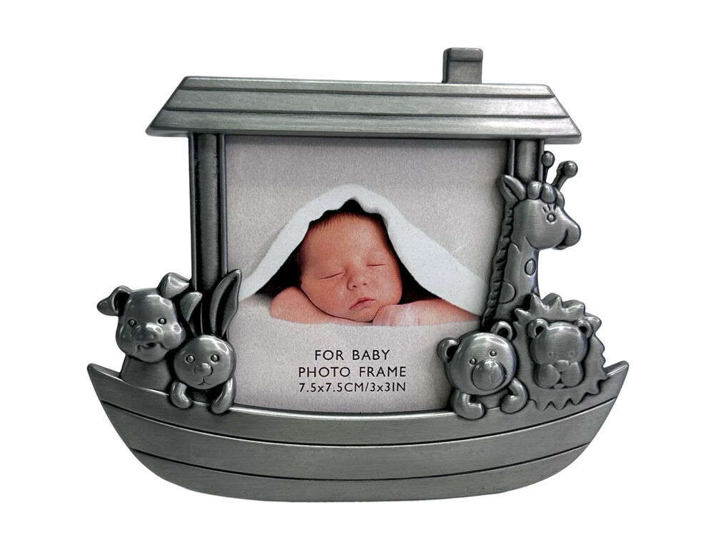 A beautiful pewter finish photo frame of Noah's Ark. Fits a 3 x 3" photo.
