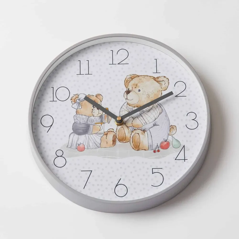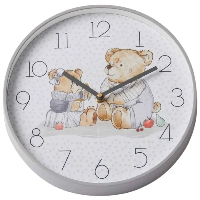 This illustrated analog wall clock is a fun and decorative way to keep track of the time and help children learn to tell time! The lightweight clock has a silent sweeping time motion, powder coated metal hands, acrylic front cover and matching coloured round frame with matte finish.
