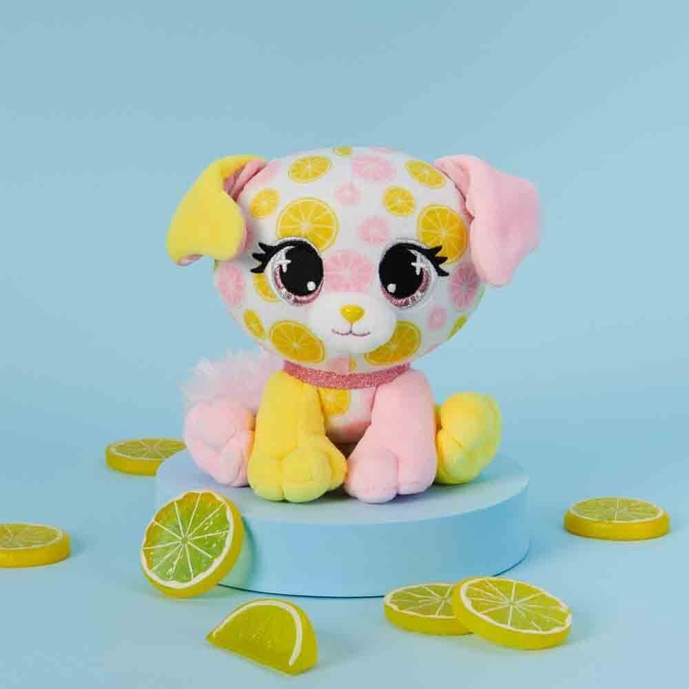MAKE LEMONADE. A lot sweet and a little tart, Capri Limone will capture your heart. Part of the P.Lushes Pets Juicy Jam collection, this perfect pup smells like the fresh, juicy lemons from her hometown of Sorrento. Capri has a playful lemon-patterned print with pink and yellow colour blocked ears and paws.