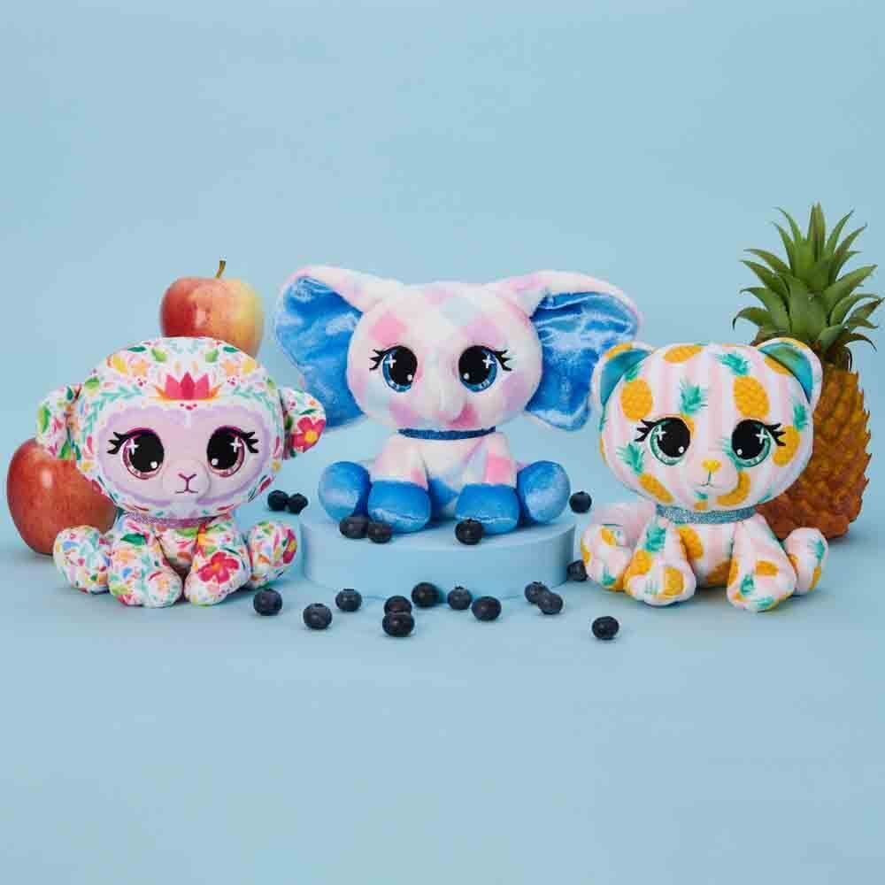 FANCY FREE. Katelyn Blume will be the apple of your eye. Part of the P.Lushes Pets Juicy Jam collection, this free-spirited monkey is an artist at heart with a rich, vibrant white floral print from her ears to her tail.