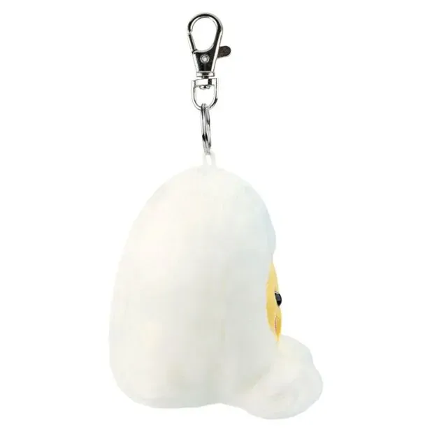 Bobby’s here to brighten bags, backpacks and keychains across the land. With his cheerful yolk-yellow face, black beady eyes, rosy pink cheeks, and fluffy little white legs, he’s as cute as they come. Super soft, squishy, and full of personality, he’s a cracking companion for any adventure.