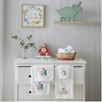 Matching Embroidered Baby Bath Towel and Face Washer presented in a delicate white Organza Bag.
