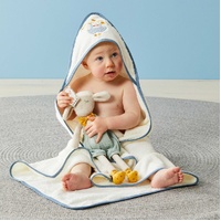 Make baby bath time easy and fun with the Jiggle & Giggle embroidered hooded towel range. Made from soft and absorbent premium cotton towelling, this hooded towel is super soft and gentle on baby skin. Featuring a gorgeous embroidered sheep character on the hood, contrast colour cotton binding and a hanging loop. Packaged in a beautiful gift box.