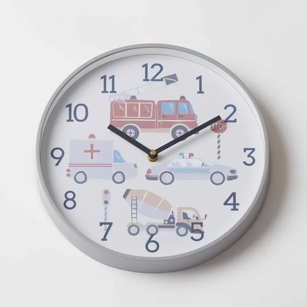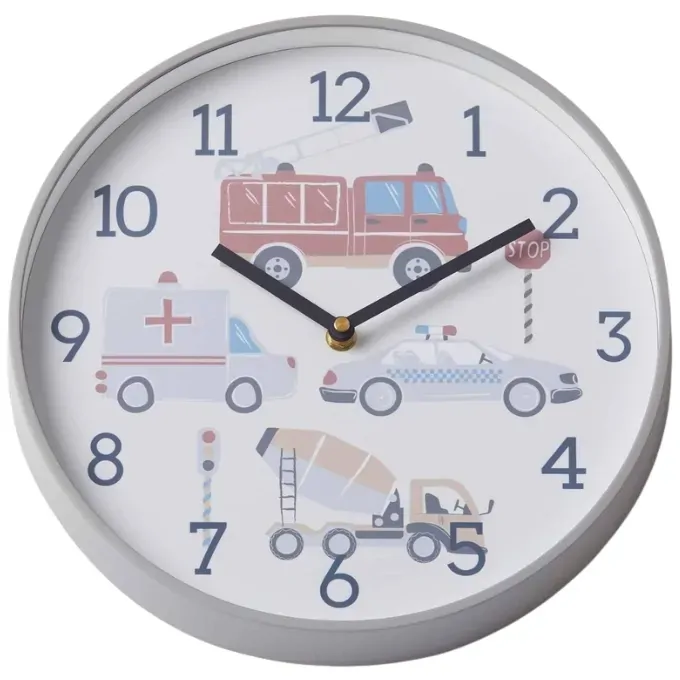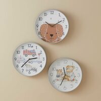 This illustrated analog wall clock is a fun and decorative way to keep track of the time and help children learn to tell time! The lightweight clock has a silent sweeping time motion, powder coated metal hands, acrylic front cover and matching coloured round frame with matte finish.