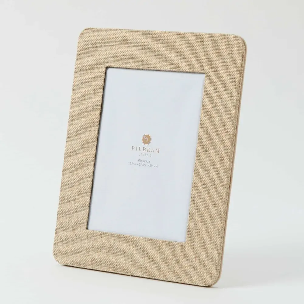 Display cherished memories with our stunning range of frames. The Aura 5x7” Photo Frame is the perfect accessory to complement any décor in the home or office. This stylish frame is crafted with a natural textured weaved in a neutral soft tone. Suitable for display on a mantle, coffee table or hallway entry. Can be used either for portrait or landscape photos. The ideal nostalgic addition to any room or a lovely gift for that someone special.