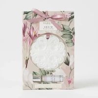 This beautifully made Ceramic Disc, with an intricate floral design, can be used to gently fragrance your wardrobe, drawers, cupboards, bathroom, car or office. Simply spray the Ceramic Disc with the provided fragrance spray and place it anywhere you like for a subtle and delightful aroma. The disc can also be hung by the ribbon attached.