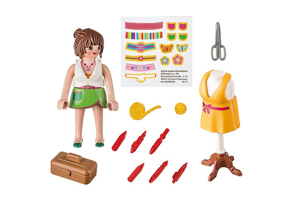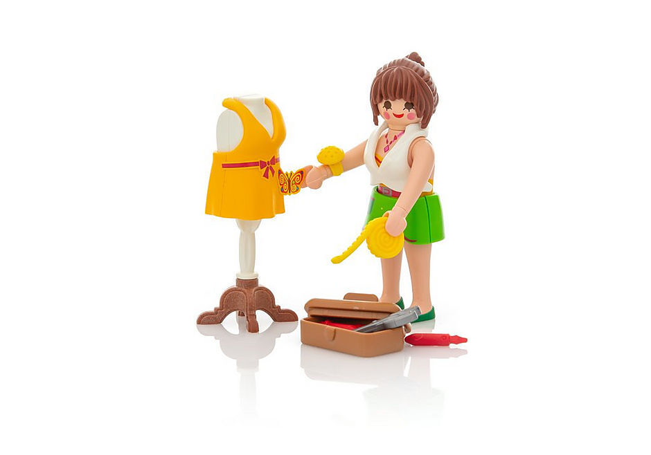 Help the fashion designer complete her creation for the catwalk in this set from Playmobil! Make the design uniquely yours with the included label sheet.