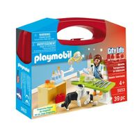 Treat ailing animals with this portable vet carry case from Playmobil! This set has everything your child needs to play out the day to day life of a vet. Diagnose on the exam table and use the tools to start treatment. All items fit neatly in the carry case so that it's easy to play on the go.