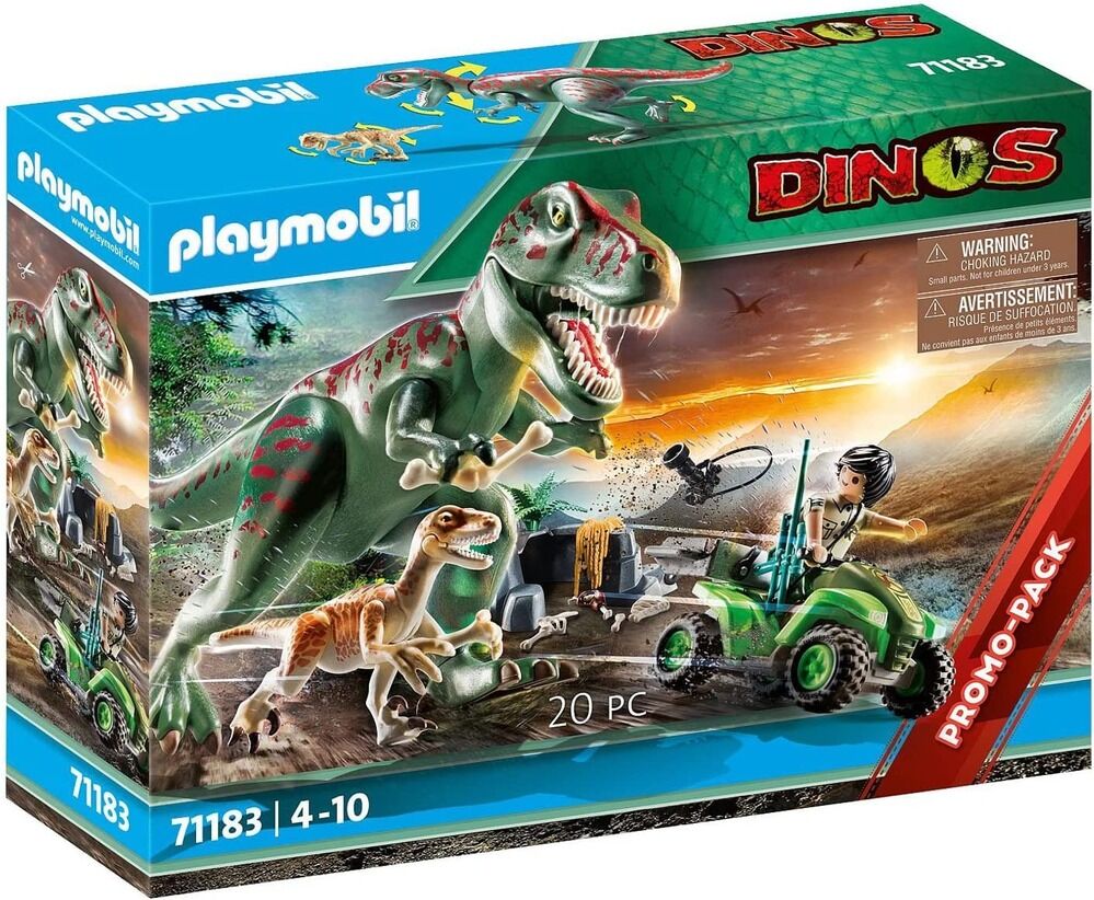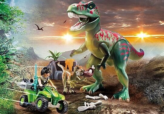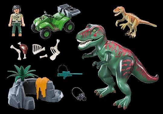 Feel your heart race as the T-Rex spots the researcher and charges after his quad bike to attack! Even the Deinonychus knows to steer clear of the rampaging T-Rex's path. Kids will love acting out daring getaways and the T-Rex's chase with this action-packed set from Playmobil!