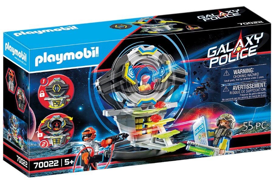 Valuable objects, minerals and precious stones are kept in the well-armored safe. Of course, the Galaxy Pirates are after this vault and forge a sinister plan. But the crystals in the safe are not only protected by the changeable secret code, but also by the clever Galaxy police officer. Will the pirates be able to break into the safe? The play set contains two PLAYMOBIL figures, the Galaxy Police Officer and the Galaxy Pirate, and a safe with a changeable access code. As a special extra, the safe can also be used as a money box.