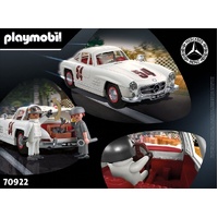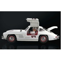 With its gullwing doors, gasoline direct injection, and lattice tubular frame, the 300 SL is highly-recognizable. The 300 SL's recipe for success is its perfect blend of rough-and-tumble racing character mixed with a dash of luxury and extravagance. And now, the dream sports car of the 20th century appears as a PLAYMOBIL version with legendary, hinged gullwing doors, chrome-colored bumpers and radiator grille, and 50s accessories.