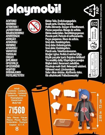 Embark on even more thrilling ninja adventures with Konan from the NARUTO SHIPPUDEN series by PLAYMOBIL. Where action, adventure, and creativity collide! The new figures from the popular series delight fans with their creative details and cool accessories. This PLAYMOBIL set features the NARUTO SHIPPUDEN character Konan with a rose, card sets, stickers, and a stand plate for secure display. A great gift for every anime fan aged 5 and up!