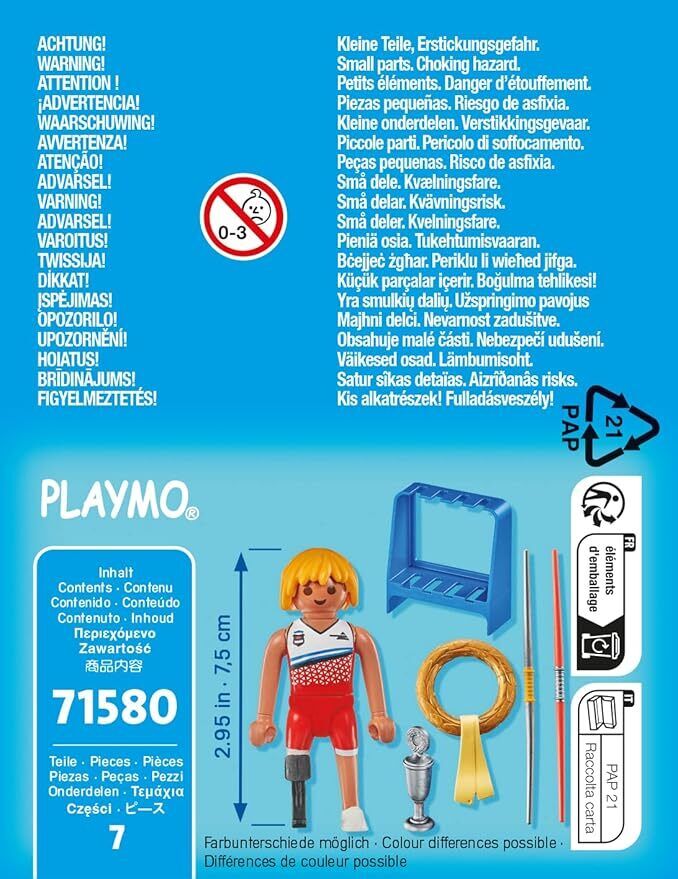 Join the excitement of the Paralympics with PLAYMOBIL's athletic Javelin Thrower. Months of preparation have led to some pretty incredible throws. The beautifully crafted Special Plus Sets are perfect little gifts for children aged 4 and up. Whether as standalone figures or combined with other PLAYMOBIL worlds, Special Plus Figures guarantee endless fun!