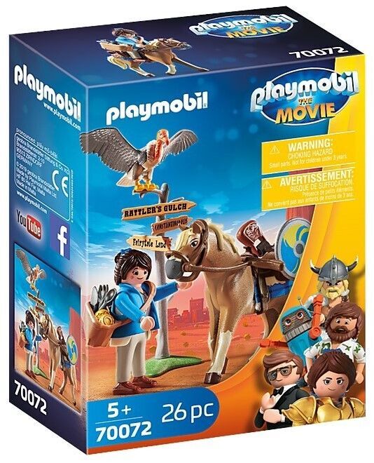 PLAYMOBIL: The Movie© is the first animated film inspired by the imaginative world of PLAYMOBIL® and takes the audience on an epic, funny and unforgettable adventure. Matching the cinema launch, there are nine cool game sets around the PLAYMOBIL® film. Included in the play set is movie character Marla in blue cardigan, a horse, a shoulder bag with cutlery and gold, and other extras