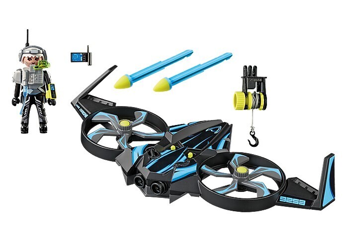• The winch below the drone can be folded down and towing various PLAYMOBIL parts.