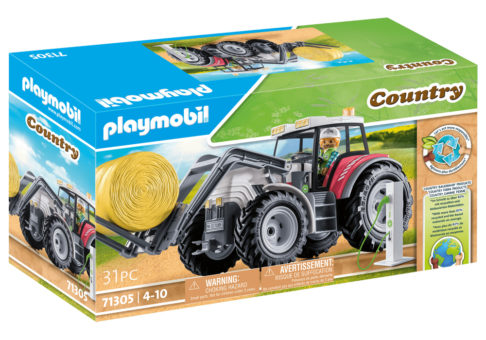 The large electric tractor with a folding roof can transport heavy hay bales effortlessly! It "refuels" with new energy at the e-charging station. This cool tractor from Playmobil has everything nature-loving children need to support the farmer's family in the field work. With the modern tractor, the heavy hay bales can be lifted and transported effortlessly, and thanks to the electric drive, it's also environmentally friendly. After work, the e-charging station can be used to "refuel" the vehicle. Makes a great birthday, holiday or any-day treat for creative kids who love agriculture.