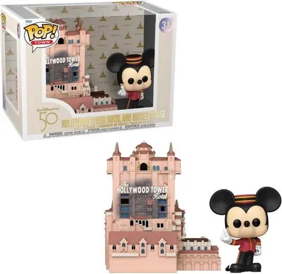 The Pop! Town Tower of Terror with Mickey transports you to a moment frozen in time. Dressed as a Hollywood Tower Hotel bellhop, Pop! vinyl Mickey points the way to elevated fun should you choose to drop in.