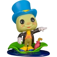 Pop! Jiminy Cricket, the moral companion from Disney's classic Pinocchio movie, floats on a leaf with his umbrella.