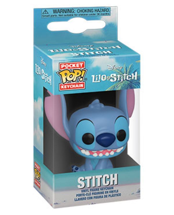 Stitch from the Disney hit movie in Pop! Vinyl pocket keychain form.