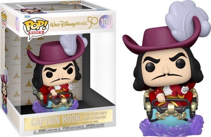 Commemorate 50 years of magic at Walt Disney World Resort with Mickey Mouse and other classic Disney characters as Pops! Captain Hook is at the Peter Pan's Flight Attraction with this Pop! Ride. Perhaps he'll have a run in with Captain Hook and escape as usual.