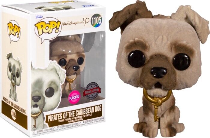 A 50th Anniversary edition of the dog who holds the prison keys from Pirates of the Caribbean: Curse of the Black Pearl. This Pop! has a flocked finish.