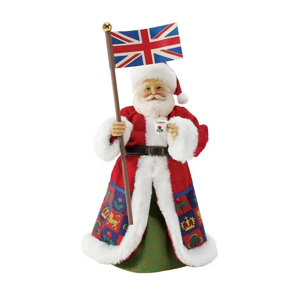 Designed by Jim Shore for Possible Dreams, this British Santa has Clothtique fabric clothing and details.The flag pole can turn, fabric flag is adjustable. All Possible Dreams Jim Shore Collaboration Pieces are Limited to their Year of production.