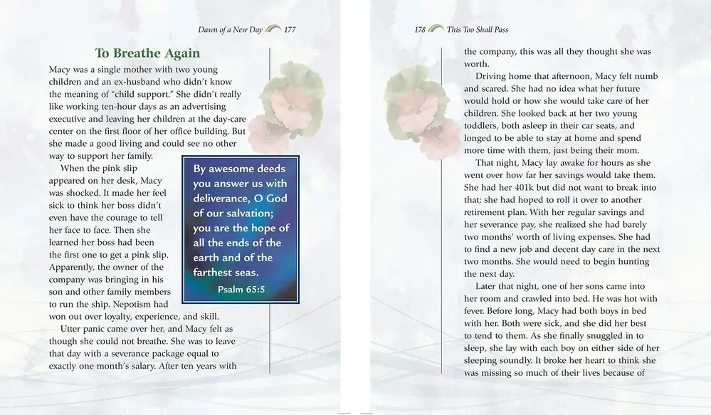 This lovely book is designed for a person going through difficult times. It contains encouraging prayers and stories, supported by comforting quotations, poems, homilies, and Bible verses,