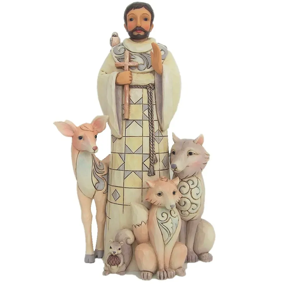 Surrounded by his forest friends; this heartfelt St Francis evokes the wonder of nature in a subtle palette of muted tones and subdued greys. Beautifully sculpted in intricate detail; this unique White Woodland design is unmistakably Jim Shore.