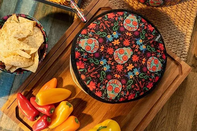 The Prepara Tortilla Warmer with Day of the Dead design keeps your tortillas warm and ready to serve. The unique design adds a festive touch to your table, making it perfect for themed dinners and celebrations. Durable and easy to use, it’s an essential tool for any taco lover.