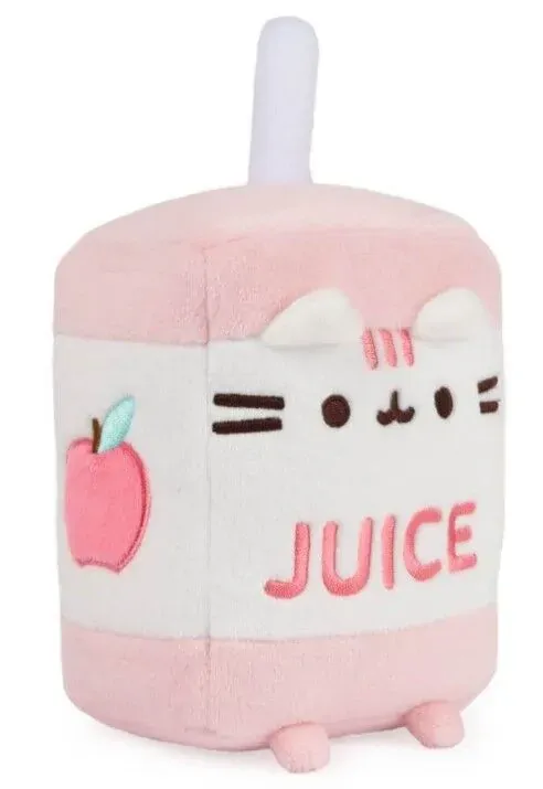 Pusheen has transformed into an apple juice box in this adorable Pusheen Sips plush collection. Features Pusheen's iconic character expression with captions 'Juice'.