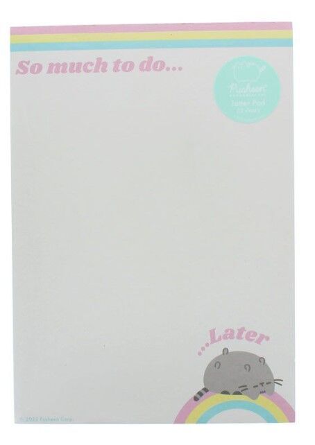 Jot down notes and important tasks with this adorable Pusheen Desk Pad. Features an adorable illustration of Pusheen laying on her back with the captions 'So much to do' and 'Later'.