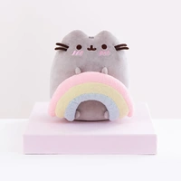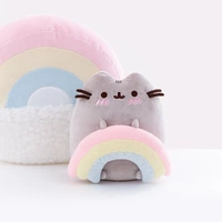 Pusheen loves spreading joy and happiness to all her followers! With blushing pink cheeks, Pusheen is holding onto a pastel coloured rainbow.